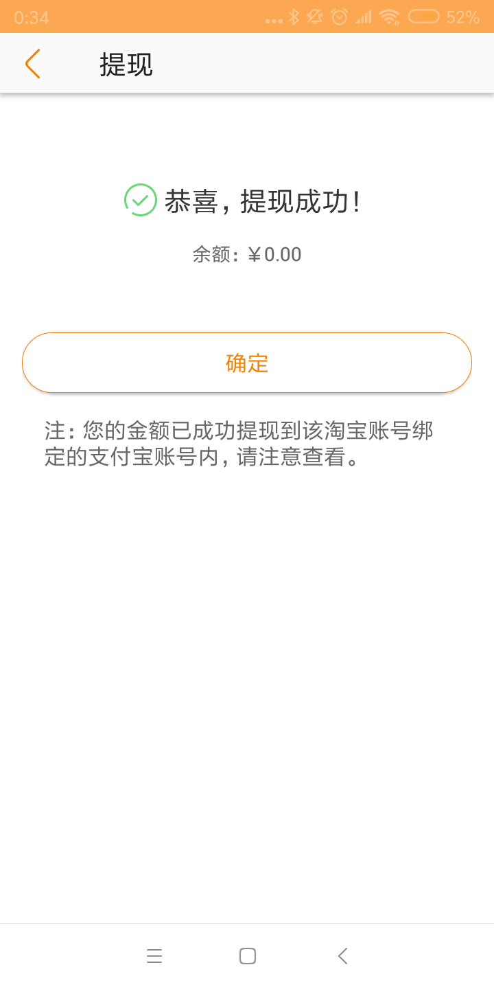 現金化(支付宝のアカウントに加算)したい金額を入力して、「提现」をタップ。