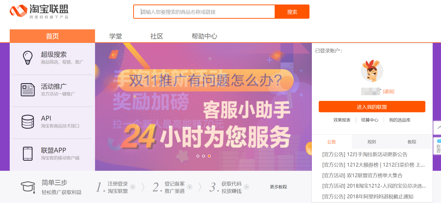 前回はタオバオのアフィリエイトサイトへのログイン方法、アリフィエイト用リンクを取得する方法等を紹介しましたが、今回は発生した収益の受取り方法を解説します。