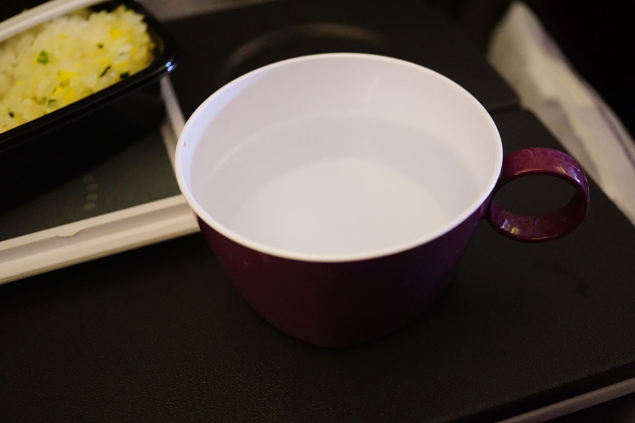 Regarding drinks, you can order hot water if you like (I just do so affected by my Chinese friends), but note that it takes a while to be served. This is because they do not have hot water on their drink carts, and need to get your cup filled at the back yard only after serving the other passangers.